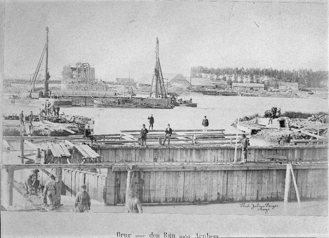De aanleg van de spoorbrug rond 1876 (Collectie: Gelders Archief)